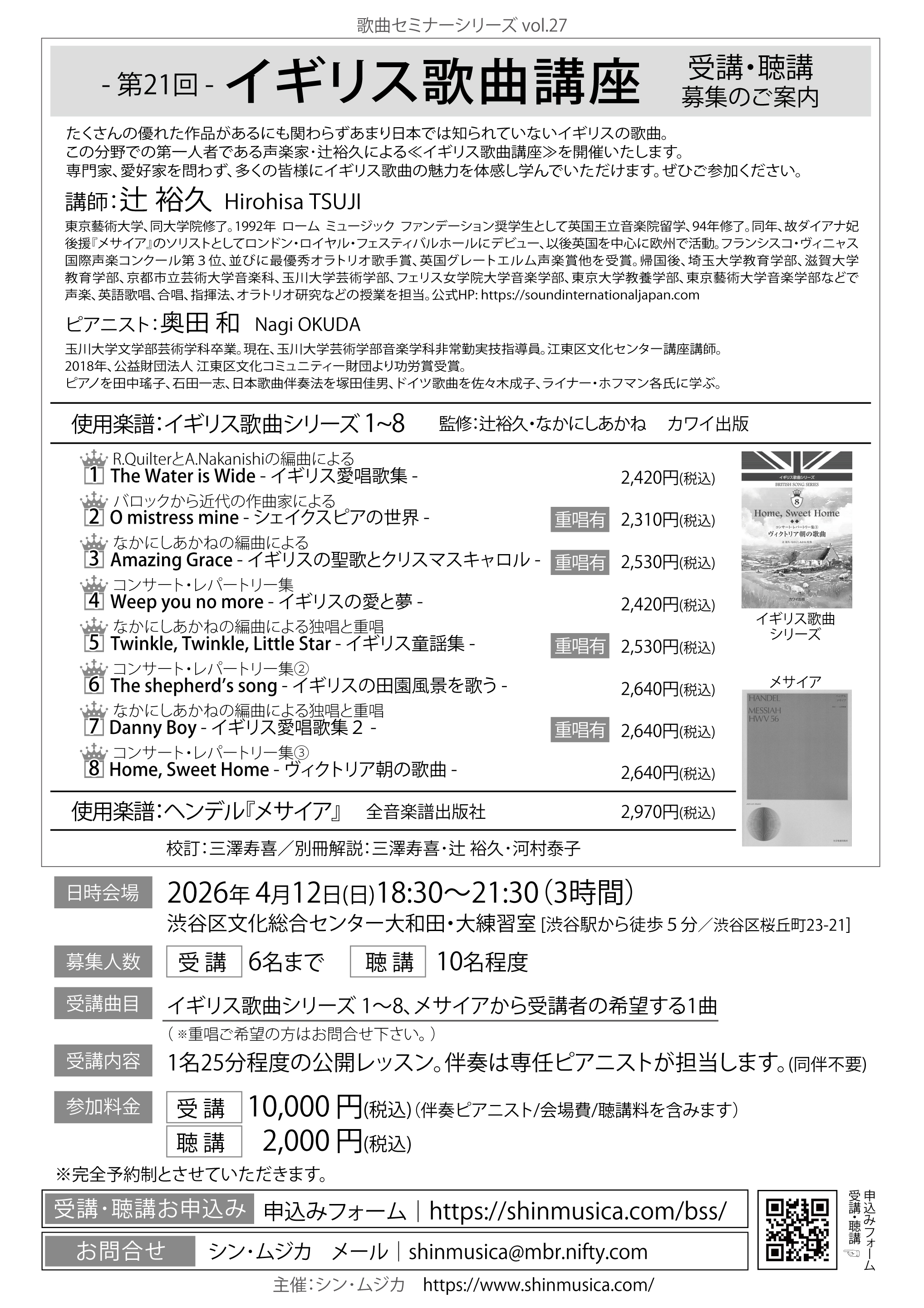■第21回 イギリス歌曲講座(講師:辻裕久先生) ~ 歌曲セミナーシリーズ vol.27 ~